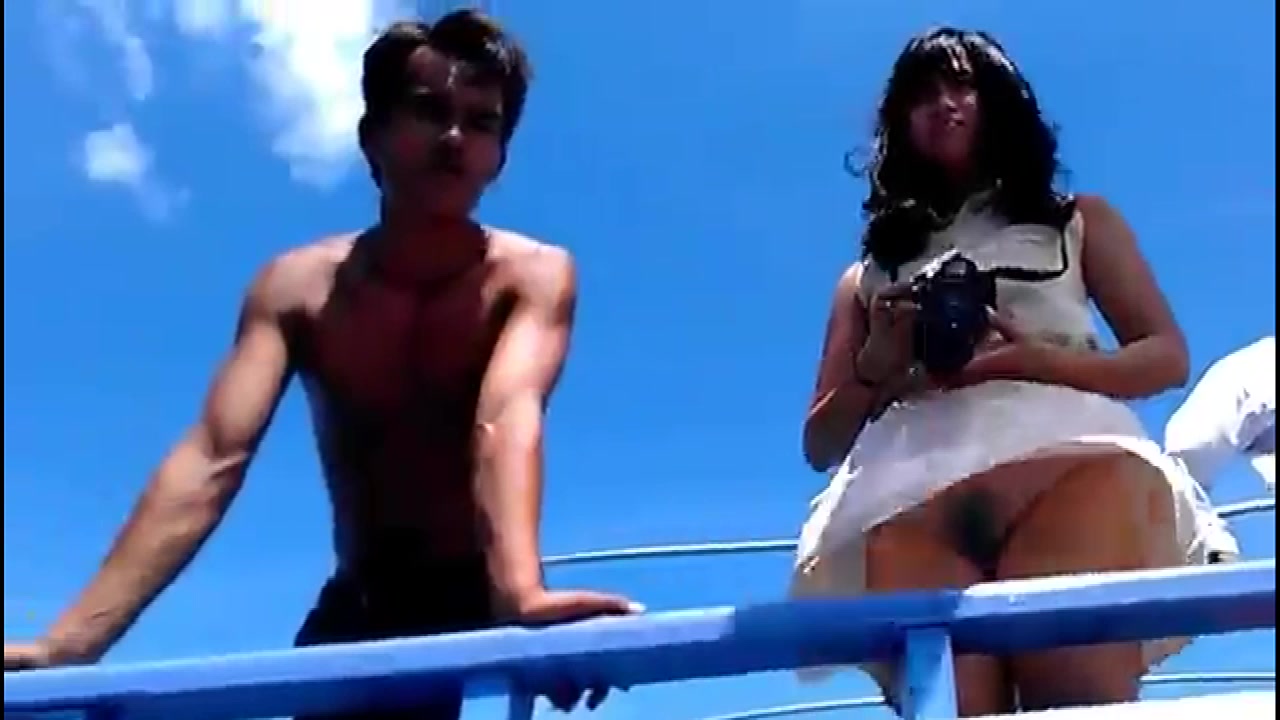 Мужик вышел поснимать кампанию друзей на палубе корабля, включил камеру и начал ей водить по всем, кто стоял и держался за перила, чтобы никого не обделить вниманием. Внезапно налетевший ветер начал задирать платье молодой азиатки и та понимая, что под одеждой кроме ее волосатого лобка ничего нет, принялась ее одергивать руками, но было уже поздно и все ее прелести точно попали в объектив. И хотя парень сделал вид, что ничего не заметил, повел камеру в обратном направлении и еще раз записал ее дырочку.