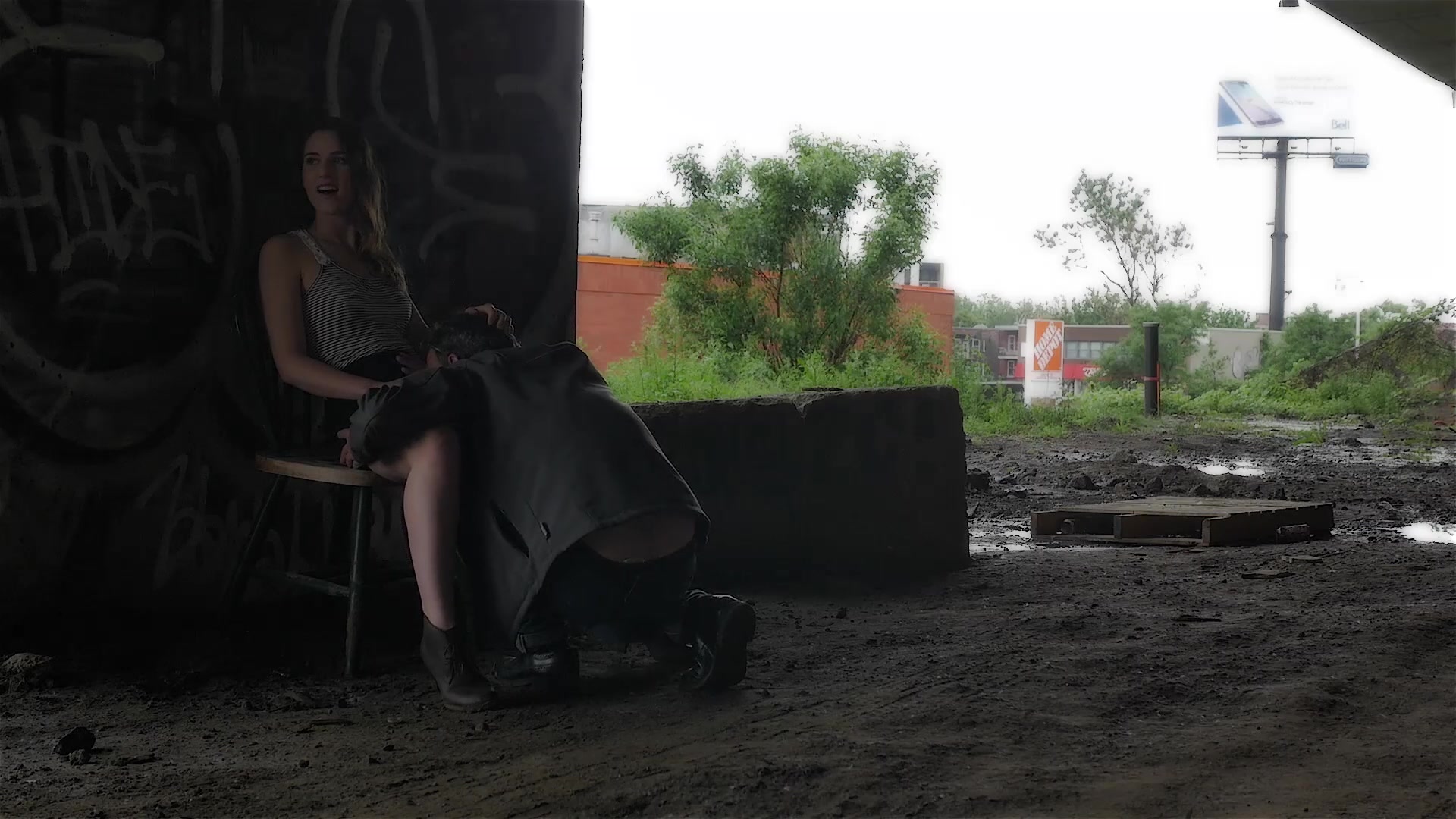 Парочка влюбленных уединилась в очень интересном месте для занятия оральным сексом, а именно они пришли под мост и прямо на улице решили не много развлечься. Девушка уселась на стуле, а парниша стал на колени перед ней, чтобы легко добраться до ее промежности. Он снял шорты со своей девушки, отодвинул трусики и принялся вылизывать ее промежность, девица положила руку парню на голову и легонька постанывала от удовольствия.